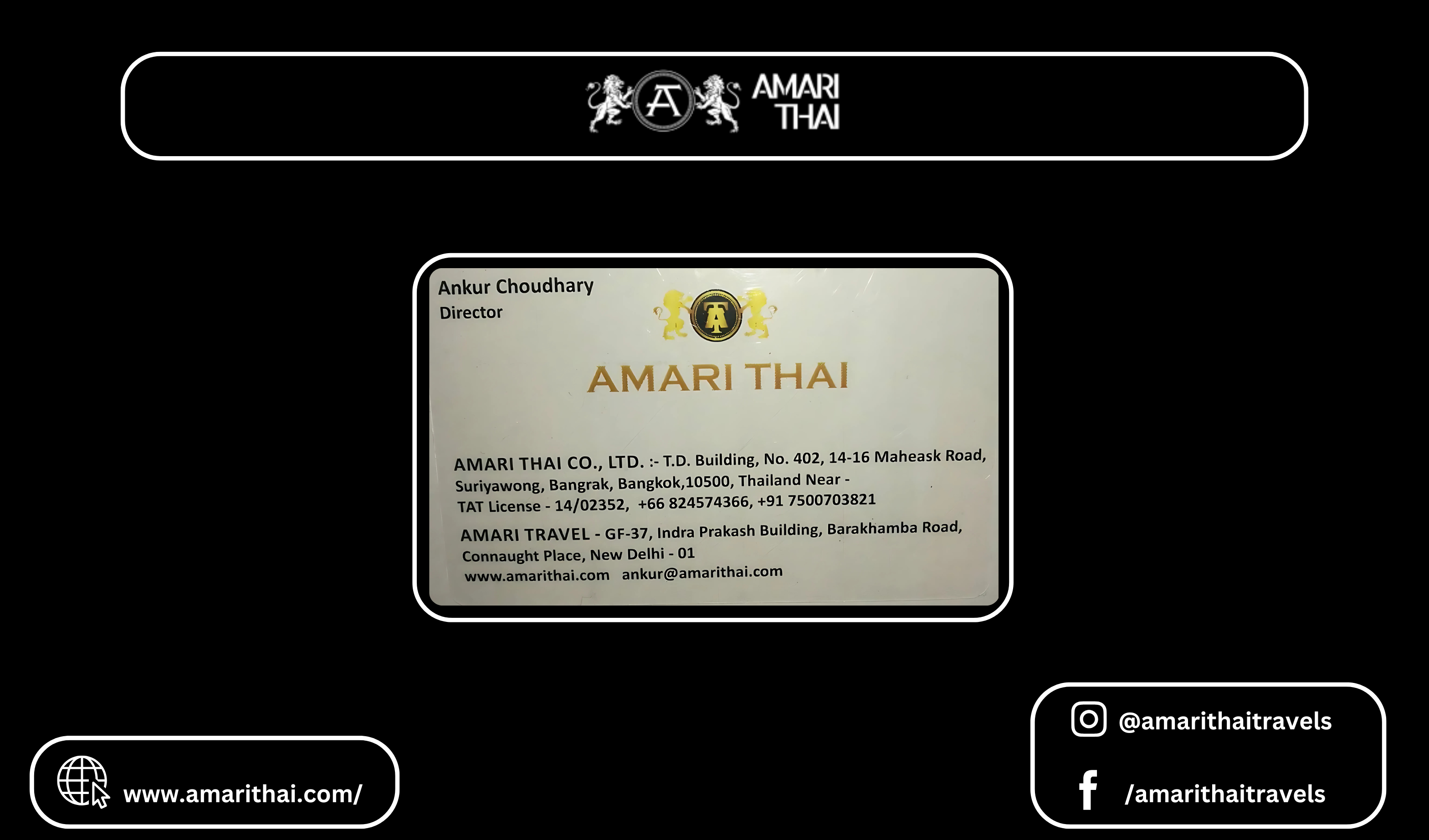 AMARI THAI CO. LTD. is a Thailand Destination Management Company (DMC) under TAT license #14/02352, combining comfort and genuineness in Thailand's greatest destinations. We believe your business is your business. That means you use our network, receive our full support, but retain your own customers and brand.